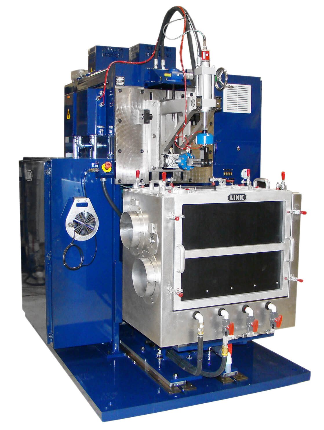 This machine is unique in that water, mud and other slurry mixtures can be sprayed on the bearing during testing. Additionally, the test enclosure is thermally insulated for cold weather environmental testing.