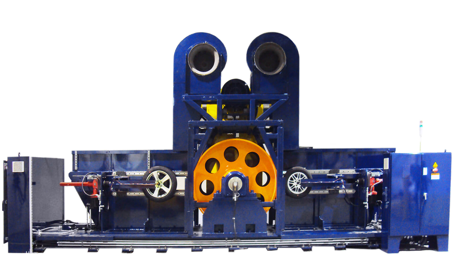 The LINK Radial Fatigue Machine is capable of reproducing the radial forces acting on wheels and tires to evaluate their integrity. This road wheel type machine functions by applying a controllable load to the test wheel and tire normal to the surface of the road wheel and inline radially with the center of the test article. Additionally, the rotational axis of both the test article and road wheel are parallel.